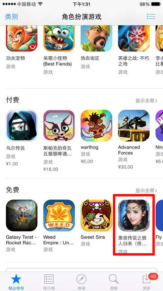众所周知,苹果AppStore精品推荐榜以公正、严格着称,精品榜单长期以来被英文、日文游戏霸占,能够入苹果法眼的中文游戏,自然是精品中的精品。在精品推荐中,我们还看到了一直深受玩家喜爱的《梦幻西游》,能与它在同一榜单上的游戏当然也不简单,《黑夜传说之狼人归来》能够得到如此肯定的认可,必然会有与众不同的特别之处!