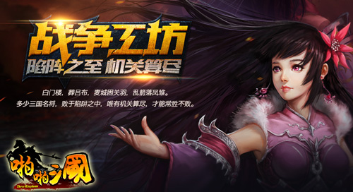 全民皆战,三国有你。继此前公会战震撼上线后,《啪啪三国》3.1新版本今日又将给各位三国迷带来什么样的惊喜呢?没错,就是战争工坊系统!各位主公可以通过工坊研发各种陷阱以及机关建筑,并将其投入到战场当中。尔虞我诈,机关算尽,三国乱世谁是霸主?