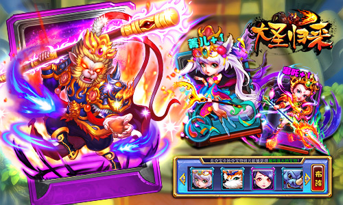 《大圣归来》在常规的卡牌收集与养成玩法中,首度创新了72变玩法,玩家可通过主角变身系统变化成任意英雄,除了英雄阵容本身的搭配丰富外,对游戏中卡牌的数值消耗也做了更深的挖掘,所有卡牌都会进行再利用,每一张卡牌都有其独特的价值所在。《大圣归来》副本也突破了传统规则,玩法独树一帜,而独创的小伙伴助战系统,还可召唤英雄,帮助玩家披荆斩棘,发出致命一击,你的降魔之路不再孤单,邀上你的小伙伴来战!