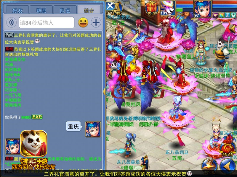 系统频道每天都会在随机时间刷新问答题,玩家可在综合频道抢答获取奖励,回答时限为1分钟,部分玩家时而有趣的回答经常逗乐全服。惊喜从天而降,抓住机会获取奖励,成为《神武》小百科吧!