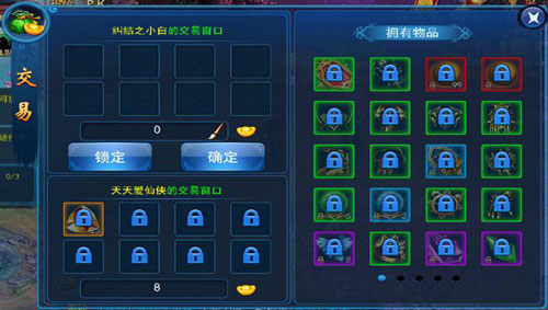 而《天天爱仙侠》中的交易系统不仅支持系统与玩家之间的交易,玩家还可以相互交易非绑定物品以及元宝。交易系统允许玩家每次交易放入8个非绑物品,而元宝交易则没有设定上限。需要注意的是在进行道具装备交易时要记得提前清空背包,交易物品超过背包空间时会导致交易失败。