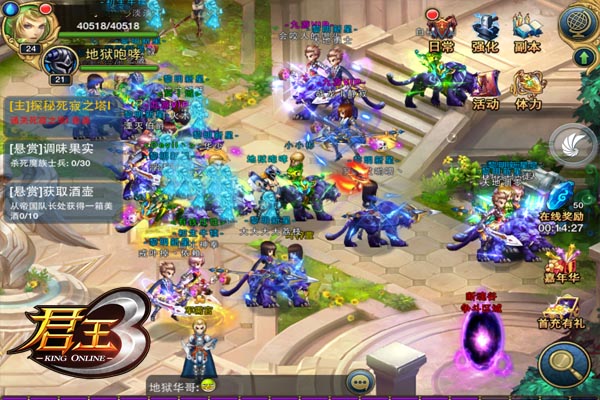 超嗨的对战模式也是《君王3》的亮点之一,种类繁多的野外地图,世界boss战,基情四射的真人大PK,热血沸腾的百人团战等多种市面上最为流行的对战模式全集合,真正诠释了战斗的最高境界,实力的大碰撞,基情无极限,置身于君王世界,“荣耀”成为唯一的目标,奋力厮杀就是这么理所当然!