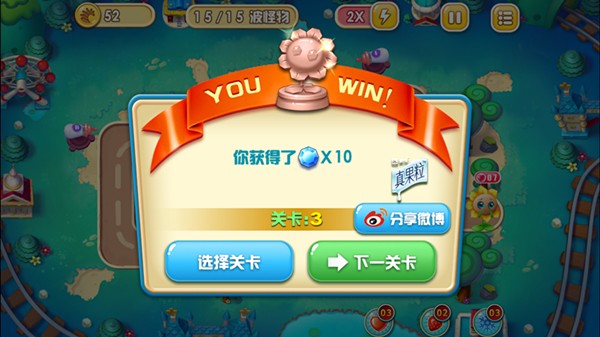 为了迎接新版上线,官方在游戏中开展了一键分享微博的活动,玩家只需在游戏中通过任意关卡即会弹出分享微博的功能界面,玩家也可以选择之前通关后的关卡再次进行挑战。在分享后即可有抽奖资格,奖品包含了旅游大奖、蒙牛真果粒以及滴滴百元大礼包,实物与虚拟奖励应有尽有,让你吃喝玩乐再也不愁!