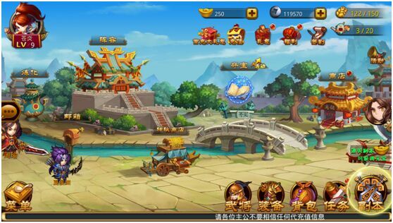 《全民爱主公》的游戏画面要从战斗和非战斗两种情况来看,玩家在城池内进行各项操作时,游戏采用了简单明快的美术风格,卡通感极强。而在战斗中使用技能时,又采用炫酷的动画技术带来震撼的视觉冲击。游戏人设也打破了三国人物脸谱化的固有印象,所有武将都以全新的原创形象登场,就连人物表情也有十分细致的刻画。