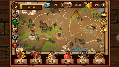 游戏中四个技能释放也是非常考究玩家的操作技巧的。在战斗中,如果手中人马不足时,可以采用“菜刀军”召唤成群的小兵,以求克敌制胜。如果敌方兵力不足,血量较少时,可以释放“天雷”或者“箭楼”对敌人造成大量伤害。