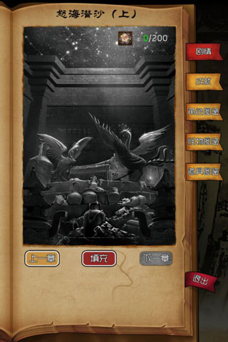 话不多说,小编直接进入游戏开撸新主线——云顶天宫。再一次回到了盗墓时代独有的古建筑风,画面古色古香韵味十足。游戏特有的繁体字,更添一层神秘的气质。心中暗爽,终于不用再看到现代护宝日记了。在这次的新版中,云顶天宫主线中不仅有昆仑胎、墙串子、百足神龙等前所未见的怪异事物,还需要通过藏尸阁、排道、火山口殉葬渠等凶险恐怖之地。游戏的主线剧情是通过书页展示,只要完成云顶天宫剧情之后就可以对书页进行填充,在云顶天宫的每一步都会被记录其中。据说此次新版的游戏美术团队是漫威原班人马,难怪游戏中式之中略带一点美式硬派风。