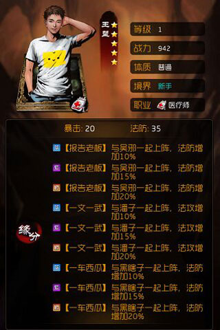 在小编打怪正爽的时候,突然好奇王盟身上的基情系统,啊不,缘分系统。《盗墓笔记》手游的缘分系统基于原着中人物关系设定,收录了包括胖子、小哥、吴邪的铁三角;吴邪与小哥的天真无邪等缘分。小鲜肉王盟在缘分设定上更偏向于辅助,和吴邪上阵杀敌可以通过“报告老板”缘分获得10%-20%法防增益,还有潘子的“一文一武”黑瞎子的“一车西瓜”。就此而言,游戏对IP的解读十分到位,盗墓小队各人关系通过缘分系统得到立体展现,即使不是稻米也能看明人物关系。