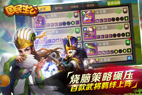 在《国民主公》里,所有的武将分为三种类型:集气型、均衡型、强攻型。集气型武将集气容易,但大招效果不佳,通常放在前排;均衡型武将能守能攻,我们可以通过技能来判断适合他的位置;强攻型武将大招厉害,但是集气慢,所以这类武将通常站在后排。虽然我们可以根据类型的不同可以粗略选择武将站的位置,但是因为缘分羁绊,每个位置又要细细斟酌!《国民主公》并不是只靠属性堆砌的无脑手游,而是一款依靠智商碾压战胜对手的策略性手游!