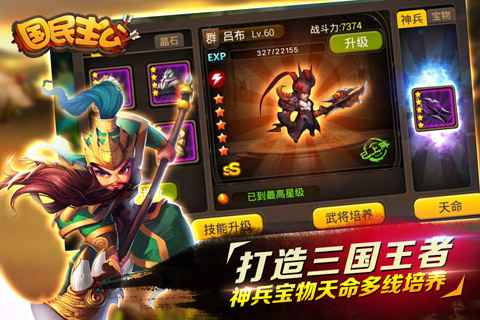 《国民主公》有的不仅仅是战斗,还有丰富的趣味性:“虚灵幻境”三种类型九大秘境,开采守护一样都不能落,“五行八卦阵”挑战重重,阵型与策略并驾齐驱,“机关营”、“试练塔”、“名人堂”……和众兄弟一起享受这繁华世界,推图打副本的同时还偶有奇遇神秘宝箱送上门,你还不赶紧合体!