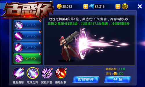 玩家消耗一定资源,通过技能升级系统,能使职业技能得到再次提升,不仅仅从伤害上,冷却时间也会得到相应缩减。玩过DNF的玩家都应该知道,当一个技能的冷却时间缩减达到一定的级别的时候,能让该职业的连招方式得到质的提升!在相同的时间内打出更多的技能、更高的伤害!