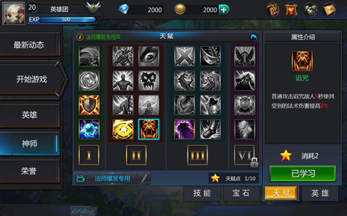 随着等级的提升,玩家们可以使用天赋点来进行自身的天赋强化以配合自己所使用的英雄。英雄会随着天赋的学习变得更加强大!每一位英雄需要学习什么样的天赋,还需要大家在游戏中更加细致的去体会!