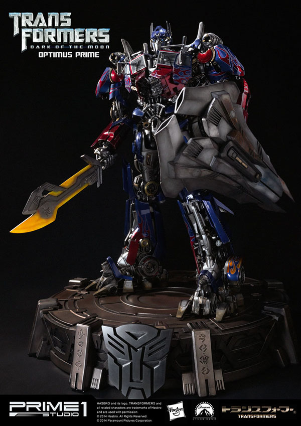 这两款模型分别是博派与狂派的领袖擎天柱和威震天,光从图片便不难看出,这两台模型造价绝对不菲。擎天柱的这款模型全高将近70CM,由模型本身和原型底座共同组合而成。模型在造型和色彩上完美还原了电影中擎天柱的霸气形态,而其精致入微的细节刻画也堪称完美。略带斑驳的金属质感外壳看起来仿佛刚刚经历过一场惨烈的战斗归来,尽显王者之气。同时其双眼以及身前腰部两侧还配备有特制的发光LED,为其增添了不少收藏价值。