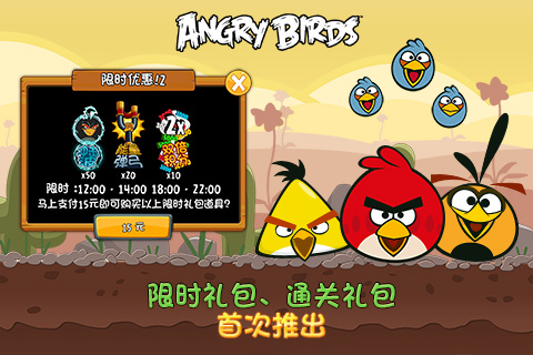快乐暑期降临,在嗨玩小鸟游戏的同时,更需要福利活动为你助兴!《愤怒的小鸟之守蛋计划》为玩家新增了两种礼包,在每天12点~14点,18点~22点登陆游戏可参与“限时礼包"折扣促销。而以三星通关的玩家能独家获取“三星通关礼包”,赠送9宫格翻牌机会,玩家可任意抽取一张获得道具奖励,并可一次性付费购买全部奖励。这么满满福利,是不是想想就小激动呢?那就快来体验吧!