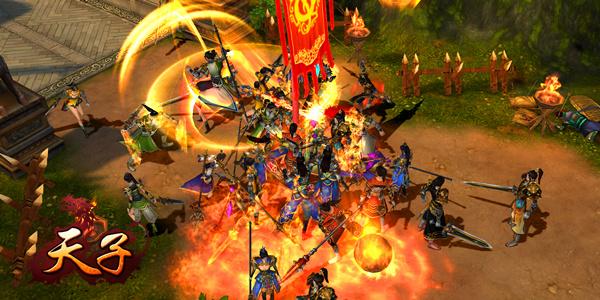 可以说《天子》手游的国战简直就是一场新世纪的视觉盛宴,游戏中无论是高耸的战旗,还是两军冲锋时候的呐喊,都能让你亲临感受到战场般的热血沸腾,而且当团战相互冲级的时候,各路大招频发,居然完全没有任何卡顿的现象。整个国战的策略性较高,两军对垒的感觉很棒,同时加入了类似动作游戏中连斩的设定后,使得整个国战就如同《真?三国无双》般爽快的体验感。