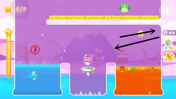 1.收集第一颗星星的时候需要注意紫色的海胆怪,跳跃的时候调整好角度还是能容易拿到星星的。