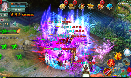 个人升级,强化装备,培养羽翼,苦练技法…最终都是为了能在游戏的核心玩法——玩家对战中一显身手。不同于其他游戏的打怪升级下副本,《魅影传说》的战斗是随时都可能发生的,无论是交通要道国境边关的遭遇战,还是宝石产地楼兰古城的团队战,都会让人感动惊险刺激而又激动不已。而国与国之间的超级国战,几千国民或攻城略地或保家卫国,数十人同屏对战,万人同服竞技争雄,更会让每个魅影传说热血沸腾,只想即刻奔赴战场,战而后快!