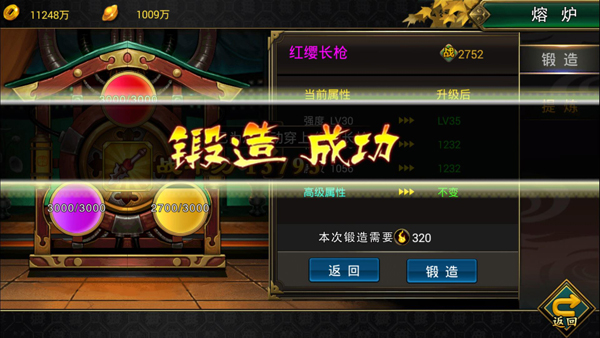 在装备强化方面,游戏设置了装备品阶,紫装为最优,其次是黄金装,以此类推。玩家能通过铁匠铺提升装备强化等级,这对于人物的战斗力提升也是非常显着的。