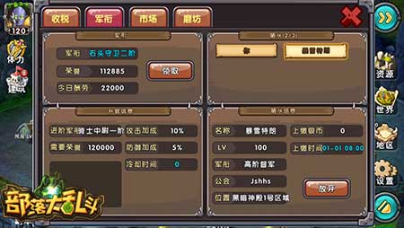 在主城之中,你可以向你的族民征收税赋;你可以提升荣誉,晋升军衔,从而得到更大的权力;你还可以收服随从,向随从征收税赋。总而言之,在这主城之中,你就是自己的王。作为一名合格的王,行政能力很重要,而合理的税收更是重中之重。合理的征税可以搞高民心,随之而来的是民众自觉交税,使得税收更高,以达成一个良性循环。反之亦然。另外,每天只能收税十五次,每收税一次民心便会下降一点。在收税的同时,主城中偶尔也会有各种突发事件,作为一名优秀的指挥官,你必须做出有利于主城发展的决策。