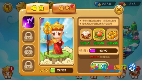 《塔塔西游》在增强产品成长深度上选择了加入卡牌养成玩法。玩家通过收集英雄碎片,即可获得新英雄,并能进行英雄升星、五行属性强化等操作。值得注意的是,《塔塔西游》的卡牌玩法并没有加入装备、技能等系统,相对轻度而又丰富的玩法更能满足玩家对休闲和新鲜的双重需求。