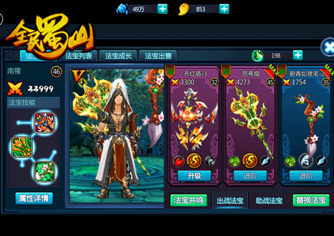 蜀山世界中有数十种法宝,玩家佩戴不同法宝将会领悟不同技能,打造独一无二的你!游戏中玩家可根据不同的需要搭配自己的技能,伤害、控制、治疗、位移自由搭配,任意选择,创造一个专属于你的蜀山仙侠。