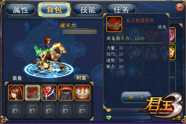 全新的私立学院系列只需要购买任意一款单品,就能提升力量、技巧、速度和耐力4大属性!每款单品均保证1200的战斗力,这就意味着拥有全部4件套的玩家,不但能化身清新可人的骚男骚女,还能妥妥的增加4800的战斗力,完美加强4大属性!这对于新手玩家来说,在游戏初期就可以轻松推图刷怪,是不是很炫酷啊!穿着新衣服就是辣么自信滴!