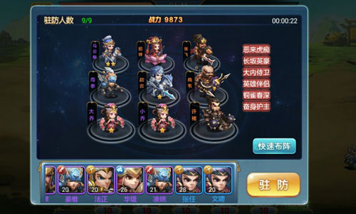 在《小小三国志》争霸战中,你将重征三国十六州,和军团兄弟再次称霸游戏!和同服玩家耍心机玩策略,选定城池后猛打游击战,看最终鹿死谁手!此外还有辅助玩法军团韬略,小手一抖,谋略、军阵、奇术和国策四个分支技能拿走,百分百保证武将战力蹭蹭蹭的涨。