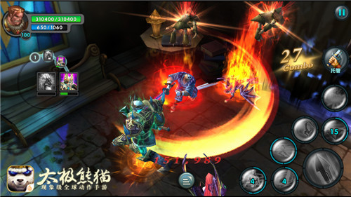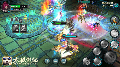 《太极熊猫》在研发之初就完全采用端游化技术,这也因此铸就了游戏的超高品质。《太极熊猫》作为蜗牛数字首款动作RPG手机游戏,拥有美式漫画与东方水墨元素结合的独特风格,采用3D端游引擎和真人捕捉技术打造,首创浮空连招格斗,带来全新畅爽打击体验。同时,游戏中还将MMO化和重度交互玩法移植到手机上,多人实时对战、实时组队副本、多人BOSS战、天梯巅峰对决、巅峰联赛、25VS25野外团战、战骑系统、公会跨服争霸、武神收集等诸多玩法都在《太极熊猫》中得以实现,让玩家在手游中也能感受到端游的庞大架构。