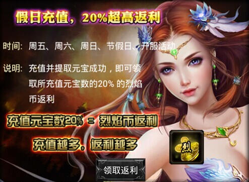 佳节没有编外,狂欢没有止境。9377《烈焰手游》七夕佳节活动除了有巨大惊喜的玫瑰赠送外,还有精心准备了更多的超级好礼。活动期间,超值大返利,赠送无上限。充值元宝提取后,可领取高达20%的烈焰币返利,并且每充值满200元宝,还能免费获得一把宝藏钥匙。