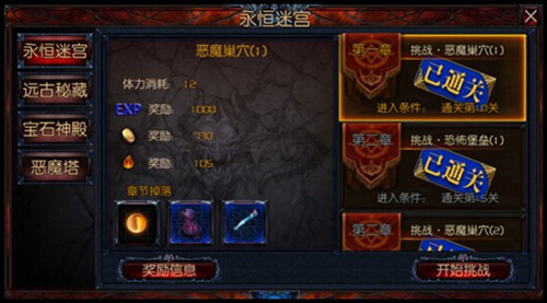 进入“永恒迷宫”需要消耗12点体力,无论你开启的是哪一个关卡,都不会加重消耗,而最终你所获得的收益也比单纯的刷副本要强得到。