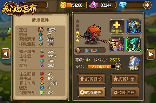 曹仁是人人皆有的坦克,初期冲锋上阵抵抗大刀十分好用,但到了后期,会逐渐发现曹仁越来越弱,抵挡不住敌人的攻击,似乎已经到了瓶颈期。因此,这时还应当培养其他坦克型武将,而其中最值得培养的莫过于张飞,他的特点是可以大范围晕眩控制敌军,打断敌军武将施法,同时血厚、护甲高、物理攻击高。有了他做前排,远程输出和奶妈们就安全多了。