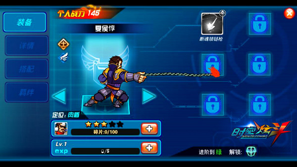 在《时空炫斗》中我们保留了夏侯惇骁勇善战的武将形象,其整体风格精悍干练,飒爽的短发,强壮的身姿,还有其标志性的黑色左眼罩都被一一还原。并且制作团队专门为夏侯将军准备了武器——断魂锁链枪,让夏侯将军看起来更加洋气,就像美国大片里炫酷的飞车党!