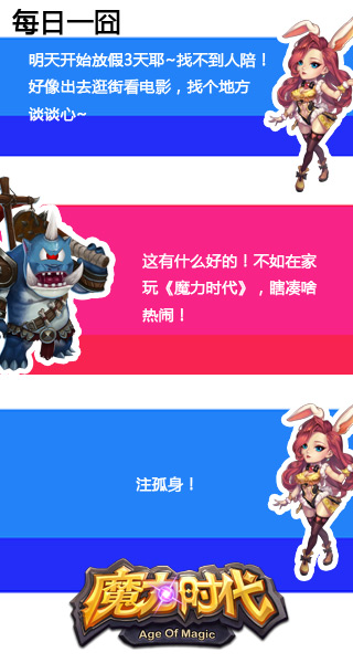 美美哒的假期又来到啦!这次的假期整整有3天,算是一个小长假了,小伙伴们还是要抓紧时间玩乐哦。《魔力时代》每周活动如约而至,为迎接小长假,策划GG呕血大赠送,壕气大爆发,全面提升活动奖品价值,多种珍贵游戏道具随活动上线免费送不停!