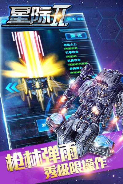 《星际Ⅱ》是一款星际空战手游,浩瀚的星云、诡谲的邂逅,全3D场景带你探索另一个地球!四款华丽战机,各种高能招式随心组合,八大激战模式帅到没朋友!手不要抖、腿不要软,一切只因弹幕太棒!无尽的科幻诡秘,狂暴的终极宇宙大战,少年,前进吧!