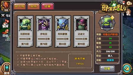 在地底深处,有着被监禁的超强英雄。这些英雄,因为各种不同原因被监禁在此。如果能够成功打败游戏中的守城骷髅,那么你就有招募这些英雄的资格。当然,能够被监禁在此的英雄绝非小辈,除了需要打败相应的守城骷髅,你还必须有足够的龙鳞才能招募他们。