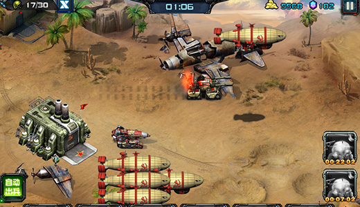 战争手游必定要有一幅宏大客观的世界地图。对于大多数的网游而言,在手掌大小的屏幕上,要呈现出精彩的战场画面实在是不容易的。但是《热血坦克》做到了:干旱的沙漠,黄沙遍地,坠毁的飞机的残骸,2D画面下的细致场景,写实地再现了一个热兵器时代下的战场,从灵魂唤起一种战争即将爆发的紧张感!