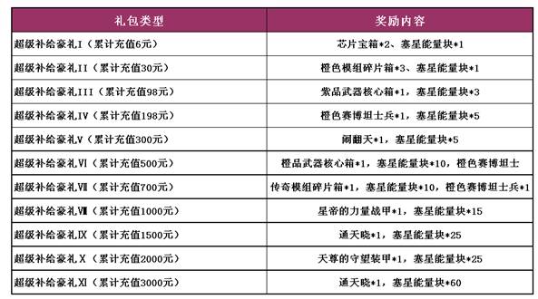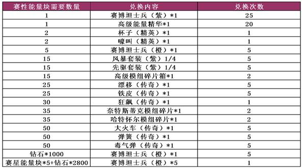 活动期间,只要玩家们的每日活跃度达到175分,即可免费领取塞星能量块*3,每日限领一次,机不可失。而玩家们所获得的塞星能量块除了能在游戏中助你一臂之力外,还可进行相应的兑换以获赠奖品,助你追求宇宙中最强力量之源。
