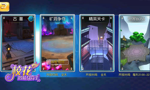 高自由、多玩法一向是《校花的贴身高手3D》的特色,矿洞全天面向全体玩家开放,并有三重不同品质的矿产供玩家采集,当然这也决定了矿洞不是谁的所有物,只要有足够的实力,便能抢占高品质的矿洞,全民乱斗大纷争,淘金缺你可不行!