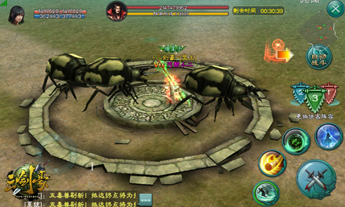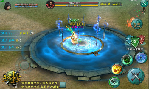 地图中央会出现一篇较大区域的剑气之池,剑气之池出现后会给予系统提示,当剑气之池同时进入5位玩家后可激活机关,三个区域剑气之池都激活后会触发剑击效果令护法防御值为零。