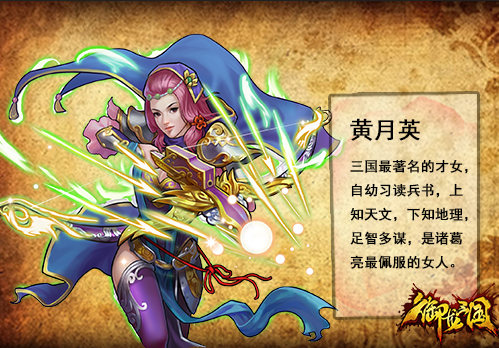 黄月英是三国最着名的才女,熟读兵书,上知天文,下知地理,足智多谋。是唯一能让诸葛亮下跪的女人,在《御龙三国》中,黄月英属于远程辅助型武将,能够对敌方一排武将实施远程打击,让敌人闻风丧胆,不寒而栗。