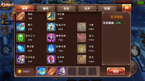 后期:九歌、渡灵、仙音、困龙、傲天、荆棘战甲(若是后期己方处于劣势,可于傲天之前先装备荆棘战甲,可根据战场实时战况,若是敌方法系输出较多较强,则可将荆棘战甲更换为结界之幕,而处于顺境之时,则可按文章所述顺序进行出装。)