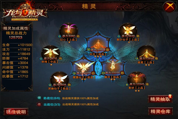 点开精灵系统界面,可以看到左侧的精灵图腾区域,想要解救小精灵,只需要点击抽取按钮,就能成功解救出可怜的精灵了!第一次免费抽取之后,还可以继续用钻石不限量抽取,各种萌物任君挑选。正常情况下,可以携带一只精灵出战,到VIP7时,就可以同时带两只精灵帮你战斗了。