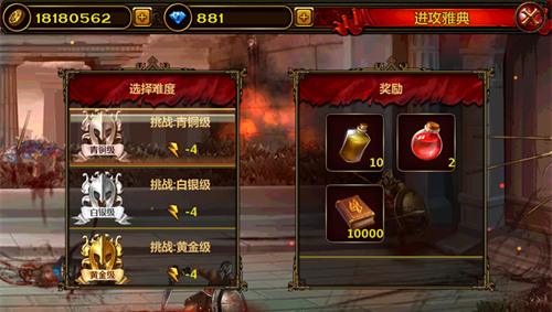 怕失败没奖励,其实目前在进攻雅典副本中,只要注意一些难点还是很容易过的。进攻雅典副本分成三个地图场景,城外、城门、皇宫,这里特别要注意的是城门场景和皇宫场景。在城门场景中,玩家必须攻破城门才能进入下一场景,而攻打城门时会有大量的火球从天而降,注意地上红色的提示,一定要尽量规避火球,因为被砸会很伤血很疼。最后就是皇宫BOSS战,这里注意不要和BOSS硬拼,注意躲掉BOSS技能,趁BOSS出招的空隙再疯狂输出,反正就是尽量躲技能,有耐心少挨几下基本都能过的!
