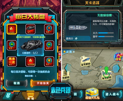 《赤色兵团》原有的连续登录奖励、通关奖励和成就奖励原本就已算是大手笔,如今更是“一掷千金”大手笔推出了“每日大转盘”玩法,每日首次登陆时,即可获得一次抽奖机会,集齐两个幻影部件即可获得幻影战车!金币、道具齐放送,“再来一次”乐不停,更有酷炫战车“幻影”等你抱回家,心动了吗,快来看看到底谁才是《赤色兵团》的大赢家!