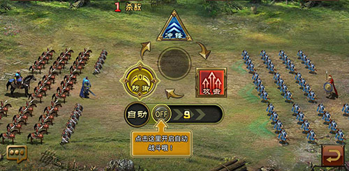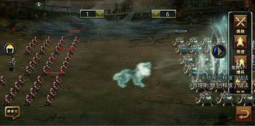 《天将雄师》突破传统策略战斗模式,以层层推进的行军方式,正面击溃敌人。每一场战斗,玩家最多可上阵4个武将,部队以队列方式排布,形成规模宏大的对阵势,继而展开前赴后继的厮杀。同时,因武将战法各有千秋,所以在战斗开始前,玩家可自由挑换武将顺序。此外,战斗系统还加入了实时操作的战术,玩家可根据战况临阵指挥大军。战术影响战局,牵一发而动全身,尽情挥洒你的谋略吧!
