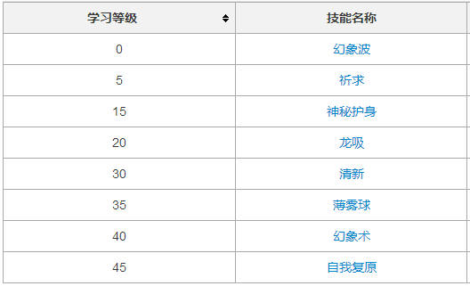龙系超能力系传说级,特防130,特攻110,专属技能薄雾球,在技能的方面可以带四攻技能增加打击面,也可以一强化技加三攻,个人觉得还是带上冥想比较好,像钢铁螳螂和佛烈托斯打不动,因为都不能学习火系技能,技能方面冥想然后在急冻光线,十万伏特,冲浪,幻象术,影子球里面选3个攻击技,如果队伍没有太多血盾可以学自我复原或者猛毒玩盾。