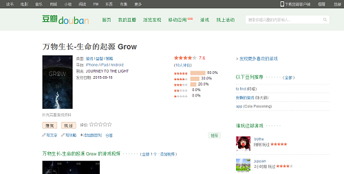 《万物生长(GROW)》正是这真正的第九艺术,该游戏在豆瓣评分高达7.4,其唯美的画面堪称手游界的艺术品;其想要表达的生命主题更像是在唱一首关于生命的赞歌;其引发的对未来的思考更让人深陷其中;其对生命力量的无比敬畏更让人无比钦佩。让你的节奏的慢下来,让时间放慢,细细的观察一颗小小的种子发芽,破土,完成第一次的光合作用,陪伴生命的成长,感受生命的伟大,这就是回归到初衷的艺术,这就是还原本真的艺术。
