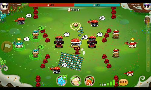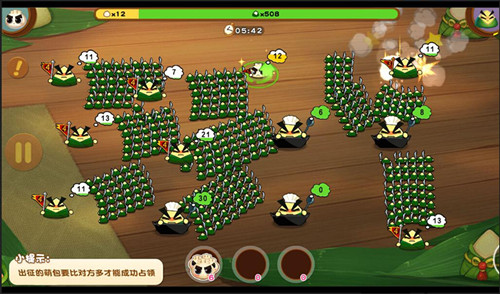 《美味战争》在玩法上属于即时划线策略手游,游戏中,玩家通过划线指挥军队占领建筑,包括敌方建筑、中立阵营、研究所。游戏中,决断力、速度、策略,这些都很重要,小编在玩游戏的时候一时走神,没有及时升级建筑,兵营容纳人数达到了上限,就不产兵了,而粽子却在源源不断的输出军队,导致最后敌方的建筑成了我的3倍多,小编只能长叹一声:无力回天,然后分分钟被秒杀。看看这倾巢而出的场面,还挺壮观!