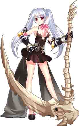 性格大条的银发双马尾,勇往直前,想到就做。作为死神的代言人和灵魂的收集者而活跃于各地。不太明白男女之间的情感,对喜欢的人毫无保留。说话口无遮拦,因此惹了不少误会和麻烦。