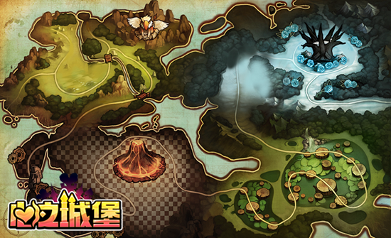 《心之城堡》拥有如下图所示的四大仙境。坐落在图片左上角的是一片葱郁的森林,火山的周围则环绕着棋盘状的黑白方格,棋局方格右侧那莲叶接天的池塘美得让人心醉,池塘上面的白色冰雪王国更加让人神往。怪物的入侵使得四大仙境的秩序全部陷入混乱,勇士只有解除了当前仙境的危机,才能找到进入下一仙境的入口,最终恢复整个仙境世界的秩序,救出心爱的女神爱丽丝。时间不早了,我们赶快出发吧!