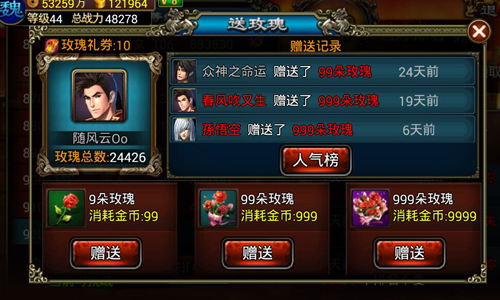 “宝刀赠英雄,玫瑰送佳人。”《龙纹三国》为广大玩家准备了足以打动佳人们的浪漫玫瑰。在光棍节这个特殊的日子,手捧娇艳欲滴的999朵玫瑰,向自己心仪的基友赠送表白,这必将让TA惊喜不已!相互赠予,有助于感情升温,自然就能赢得基友的芳心。